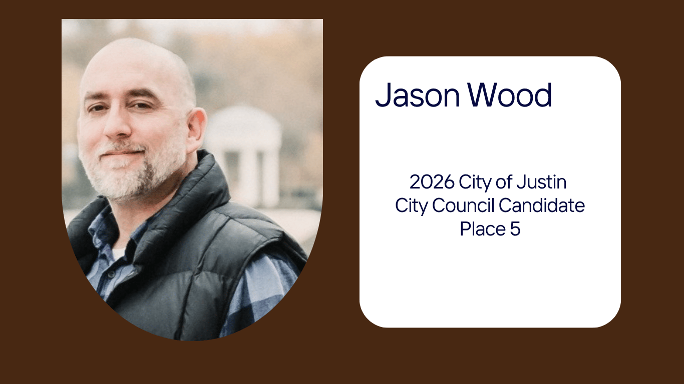"Justin is my home. I’m raising my family here, and I’ve seen firsthand both the opportunities and the challenges that come with growth. I want to make sure we grow the right way, protect what makes Justin special, and make smart decisions that set us up for the long term."